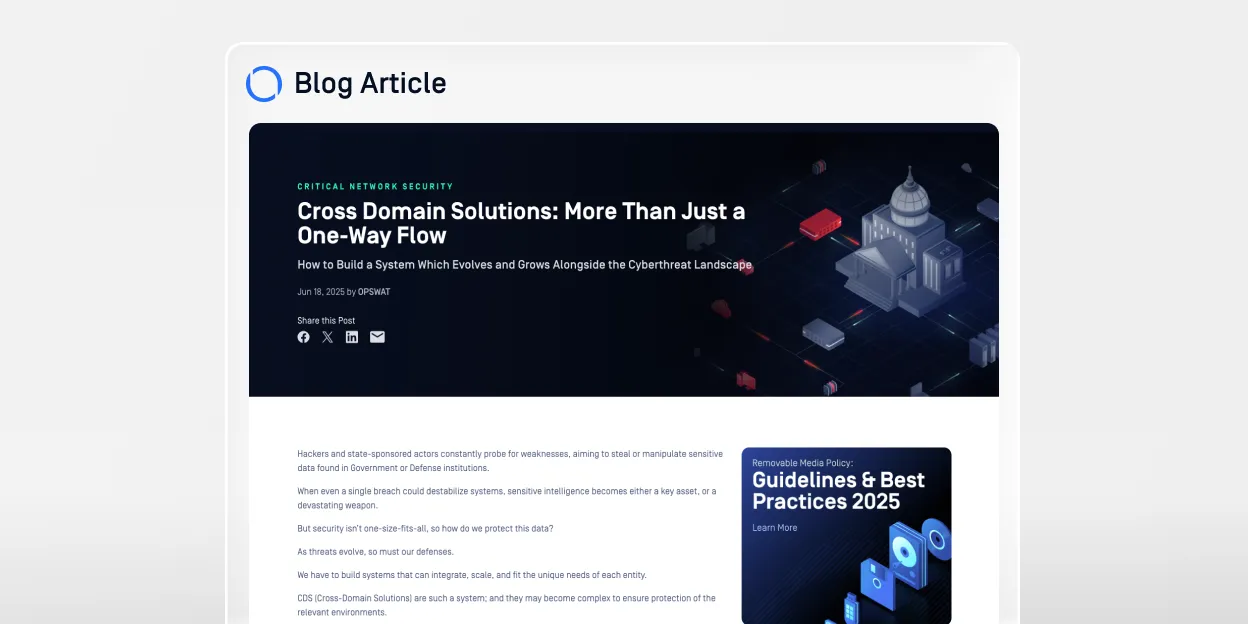 Die Cybersecurity-Plattform OPSWAT verschafft Organisationen des öffentlichen und privaten Sektors den entscheidenden Vorteil beim Schutz ihrer hochkomplexen Umgebungen.