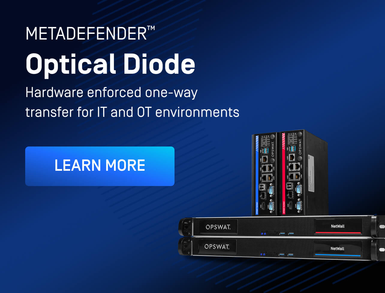 Die neuesten Updates für OPSWAT NetWall MetaDefender Unidirectional Security Gateway 5.7.0 und MetaDefender Optical Diode 1.7.0 bieten Unterstützung für ICCP (Inter-Control Center Communications Protocol). Mit diesen Erweiterungen unserer weltweit bewährten Netzwerksicherheitsprodukte bieten wir weiterhin Cybersicherheitslösungen für kritische Infrastrukturen.