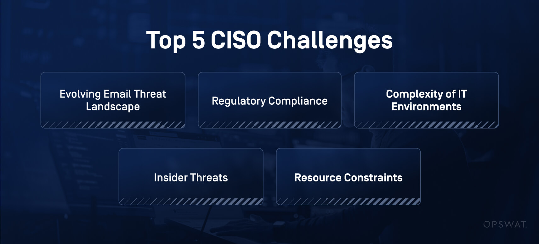 Angreifer entwickeln ständig neue Methoden zur Umgehung von Sicherheitsvorkehrungen, so dass dynamische und proaktive Sicherheitsmaßnahmen unerlässlich sind. Die Zunahme gezielter E-Mail-Angriffe, wie Spear-Phishing, Zero-Day-Malware und unbekannte dateibasierte Exploits, verkompliziert die Situation zusätzlich. CISOs müssen daher wachsam sein und proaktiv fortschrittliche Sicherheitsmaßnahmen zum Schutz vor diesen sich entwickelnden Bedrohungen implementieren.